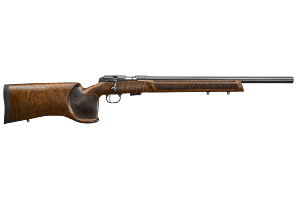 The 457 Match Target Rifle””s match chamber is cut to the tightest specification that CIP will allow, meaning it will perform impressively well with top-tier ammo. The MTR””s Turkish walnut stock is designed with ergonomics in mind, and its vertical grip has a comfortable palm swell and laser stippling for texture. A large, flat forend has dual QD studs for running a bipod and a sling, and wrap-around stippling gives much more grip for the forward hand. In addition to the receiver-mounted, push-to-fire safety, we chopped almost an inch of length from the action and slab-sided it to reduce its footprint and weight.
