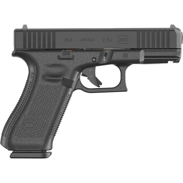 The Compact Crossover pistol G45 in 9x19mm combines a compact slide with a full size frame and has all the benefits of a Gen5 model. Utilizing the design and engineering GLOCK developed for its military pistols (G19X), combined with Operator and worldwide Law Enforcement specifications. Includes three 17-round magazines.